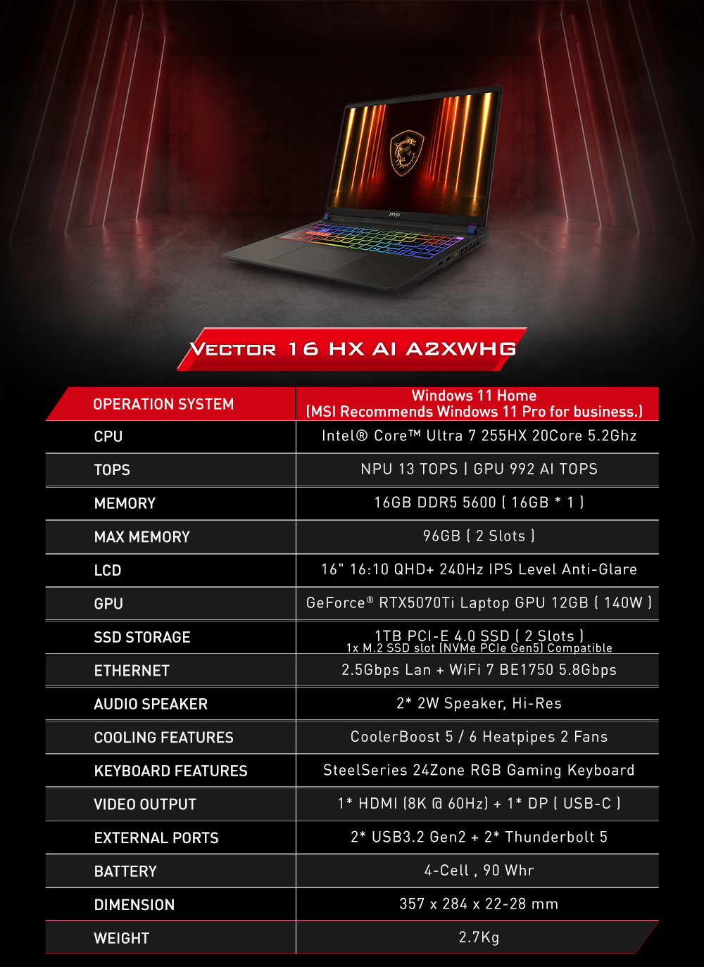 Vector 16 HX AI A2XWHG ( RTX5070Ti )
