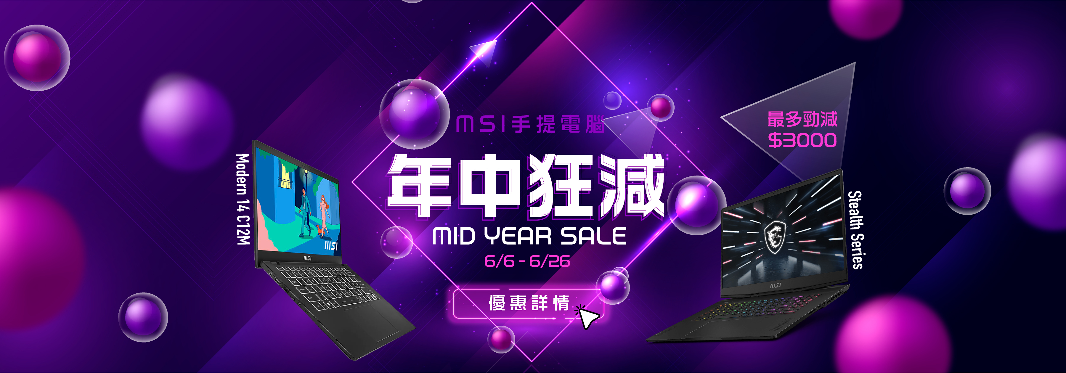 全新 12 代超型輕薄高效能手提電腦 GS / Stealth M 系列狂減 HK $3000 ,另外今年 Reddot Design Awards 得主 - Modern 14 Black 限時優惠至 HK $6,999! 入手手提電腦趁本次年中狂減優惠,現在購機最平🌟!!!!