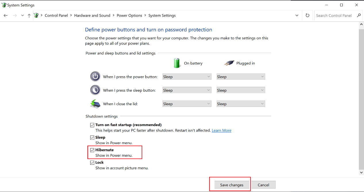 By default, the hibernate option is disabled and not shown in the power menu. You would have to manually enable it.