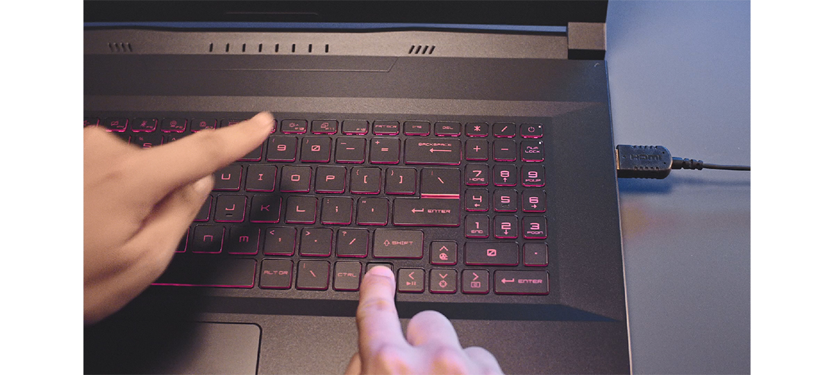 The up arrow Cooler Boost hotkey, which works the same as the Cooler Boost option in Extreme performance mode, can increase the fan rpm without opening MSI center. For left arrow hotkey, it can play and stops music; for the right arrow key, it can turn off the screen.