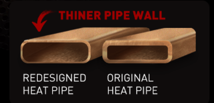 與上一代產品相比,GL系列的 Cooler Boost 3 使用更薄的熱導管壁。