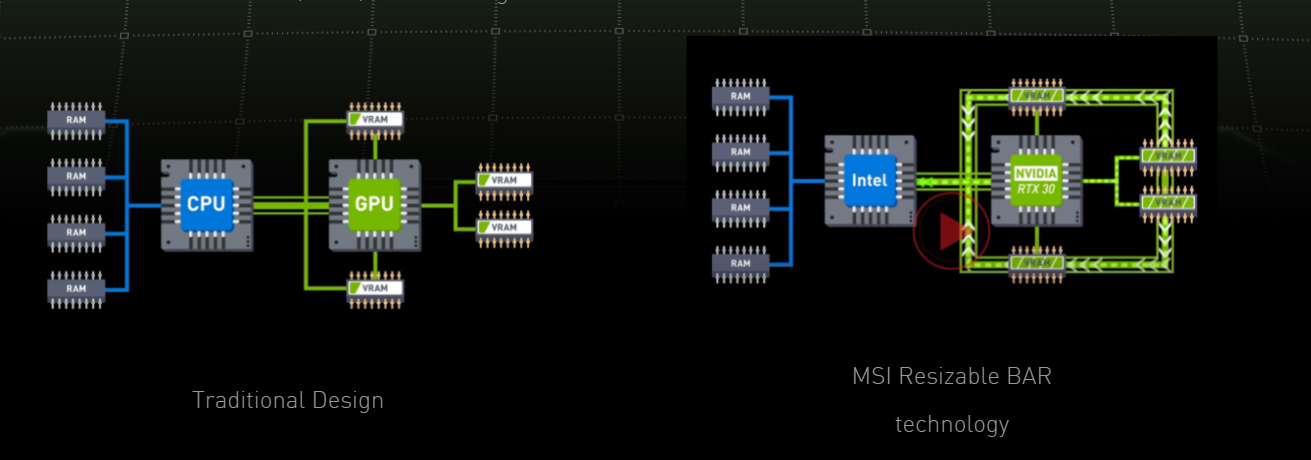 但在微星筆電啟用Resizable BAR技術後,CPU現在可以存取全部GPU的記憶體,以提高遊戲效能。