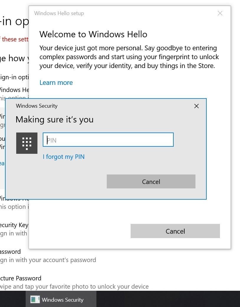 3. 跳出【Windows Hello設置】視窗,在【Windows 安全性】輸入PIN碼。