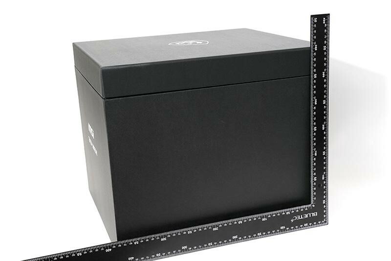 這個箱子很大,一把600x400mm的尺對它來說有點太短。當我仔細看,上面寫著箱子的尺寸是50x43.5x43公分。