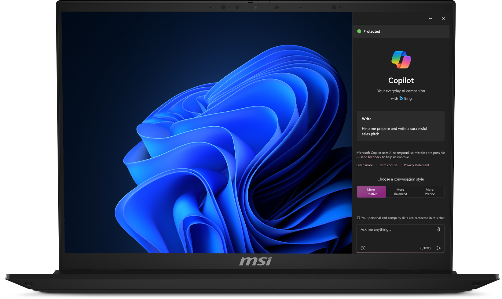 MSI 提供頂尖的 AI 解決方案,使用者能在各種應用中體驗無與倫比的效率和 AI 智慧。不論是追求強大運算效能的專業人士,或是渴望順暢工作流程的創意工作者,MSI 新世代 AI 筆電為你提供最先進的 AI 導向技術與功能,確保你在極速發展的數位世代中保持領先地位