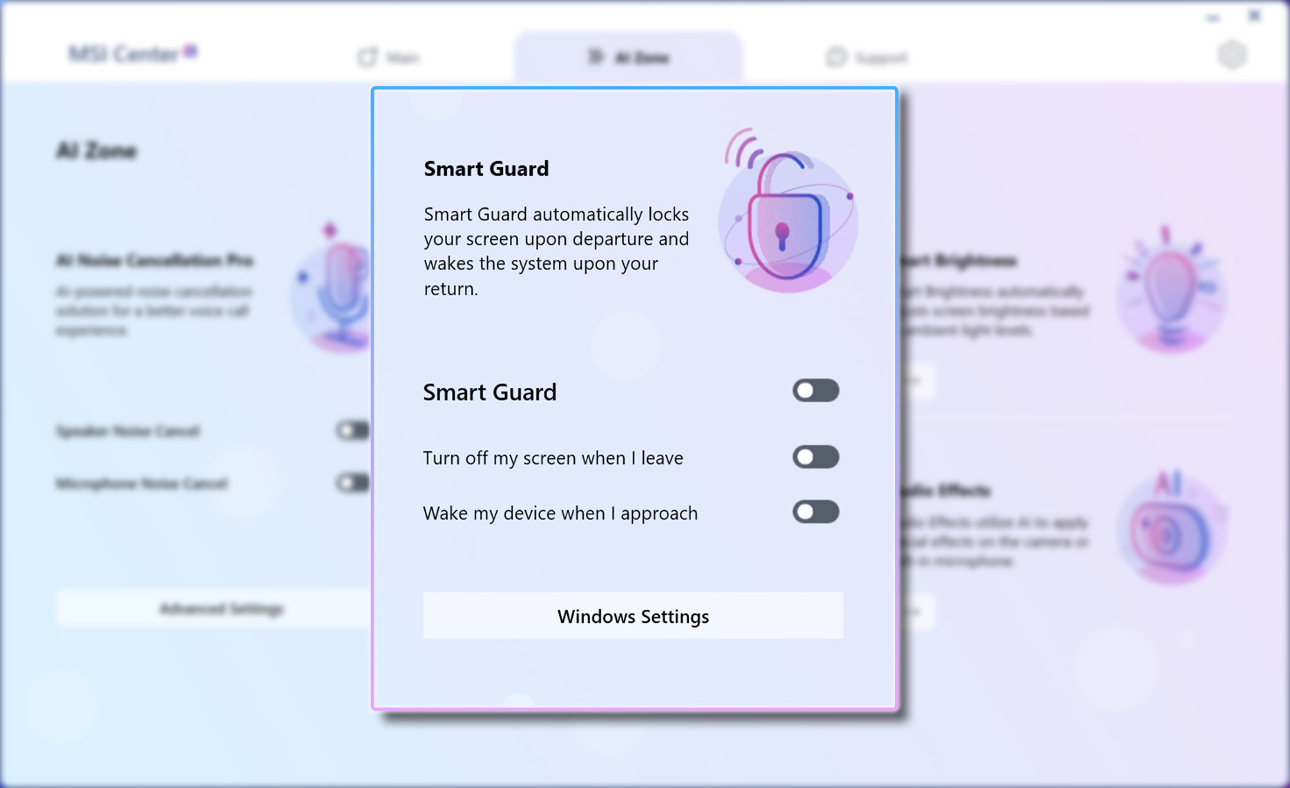Smart Guard 會在您離開時自動鎖定螢幕,確