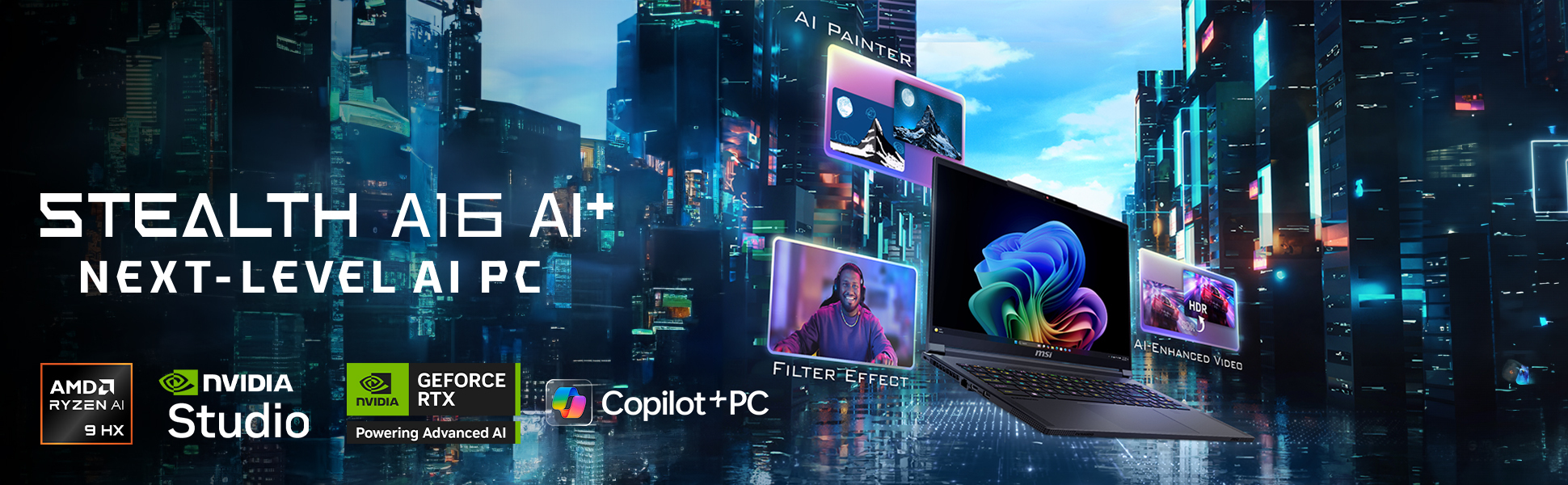Stealth 16 AI Studio 為多變的生活型態打造,隨時隨地維持高生產力。內建 99.9Whr 大容量電池,機身重量卻不到 2kg,方便外出攜帶,隨時隨地提升你的生產力。